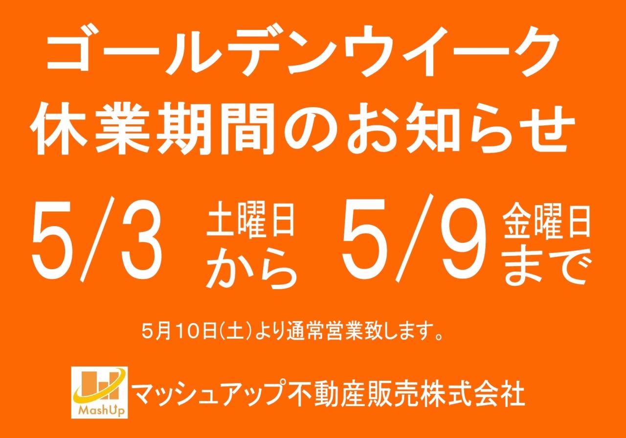 令和7年度GW休暇のお知らせ【マッシュアップ不動産販売株式会社】